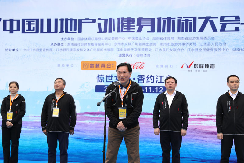 2017中国山地户外健身休闲大会——江永站是由国家体育总局登山运动管理中心、中国登山协会、湖南省体育局、湖南省旅发委联合主办,湖南省社会体育指导服务中心、永州市文体广电新闻出版局、永州市旅游外事侨务局、中共江永县委、江永县人民政府承办,御峰体育独家运营推广。富丽真金家纺、中粮可口可乐华中饮料有限公司、北京体坛华奥精英体育文化发展有限公司提供赞助支持。