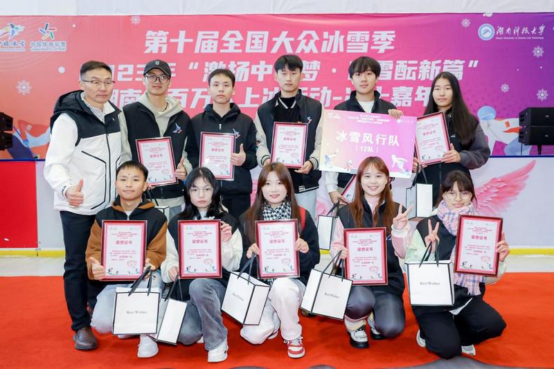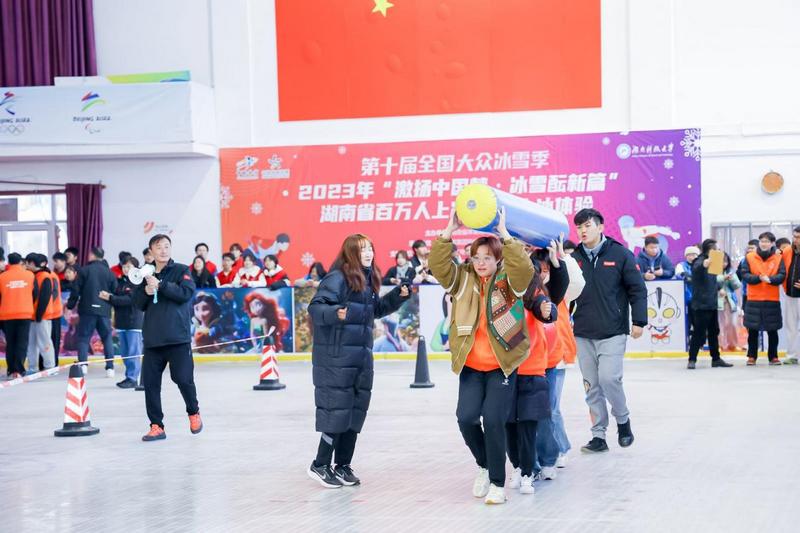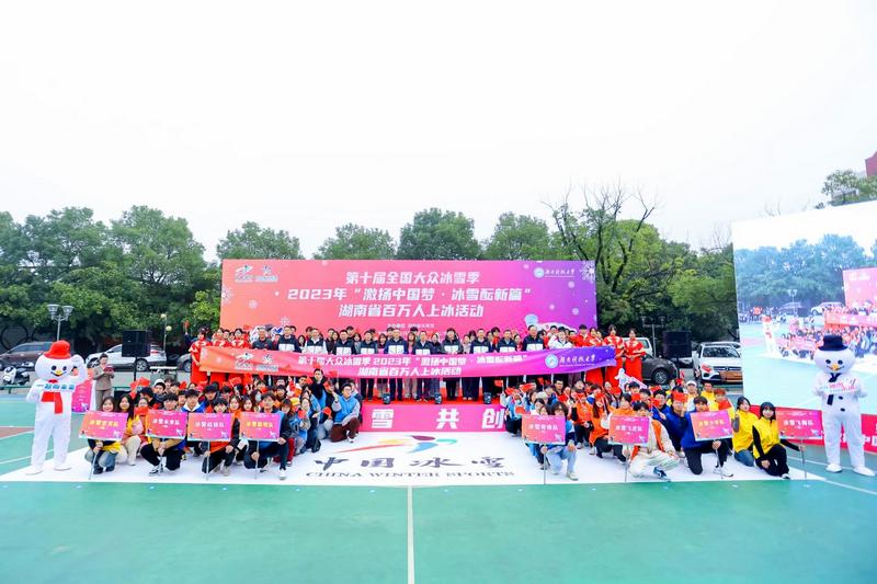 12月14日上午,第十届全国大众冰雪季暨2023年“激扬中国梦·冰雪酝新篇”湖南省百万人上冰活动在湖南科技大学举行,3000余位市民朋友和校内师生们欢聚一堂,共同享受冰上运动带来的乐趣。