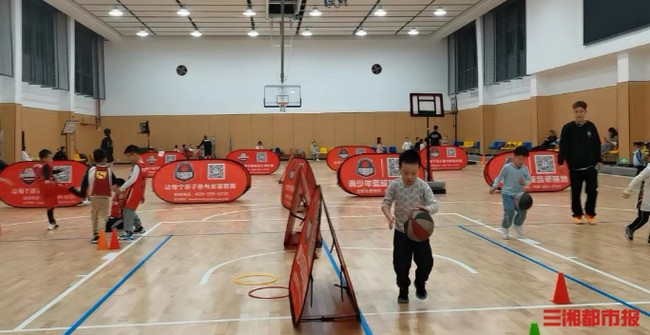 (贺龙体育馆提质改造后的训练馆内,小朋友正在篮球培训。受访者供图)