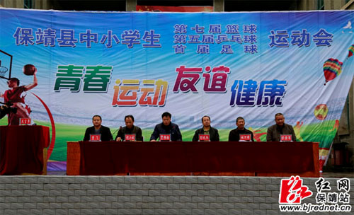 11月22日,以“青春、运动、友谊、健康”为主题的湖南省保靖县中小学生篮球、乒乓球、足球运动会开幕式在保靖民族中学操场隆重举行。开幕式在欢乐祥和的乐曲中拉开帷幕,护旗队、彩旗方阵及各学校方阵迈着整齐的步伐,依次经过主席台,接受领导检阅。