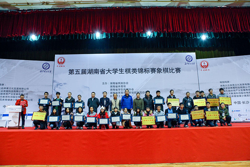 第五届湖南省大学生棋类锦标赛象棋比赛由湖南省棋类协会、湖南省体育场、湖南省学生体育协会主办,由湖南省体育场国家级校外活动中心、长沙理工大学承办。赛事得到了湖南莲花体育健康小镇发展有限公司的大力支持。省体育局青少年处处长杜利民、省棋类协会副主席兼秘书长罗立新、湖南省体育场场长刘建华等领导和嘉宾出席比赛开幕仪式。