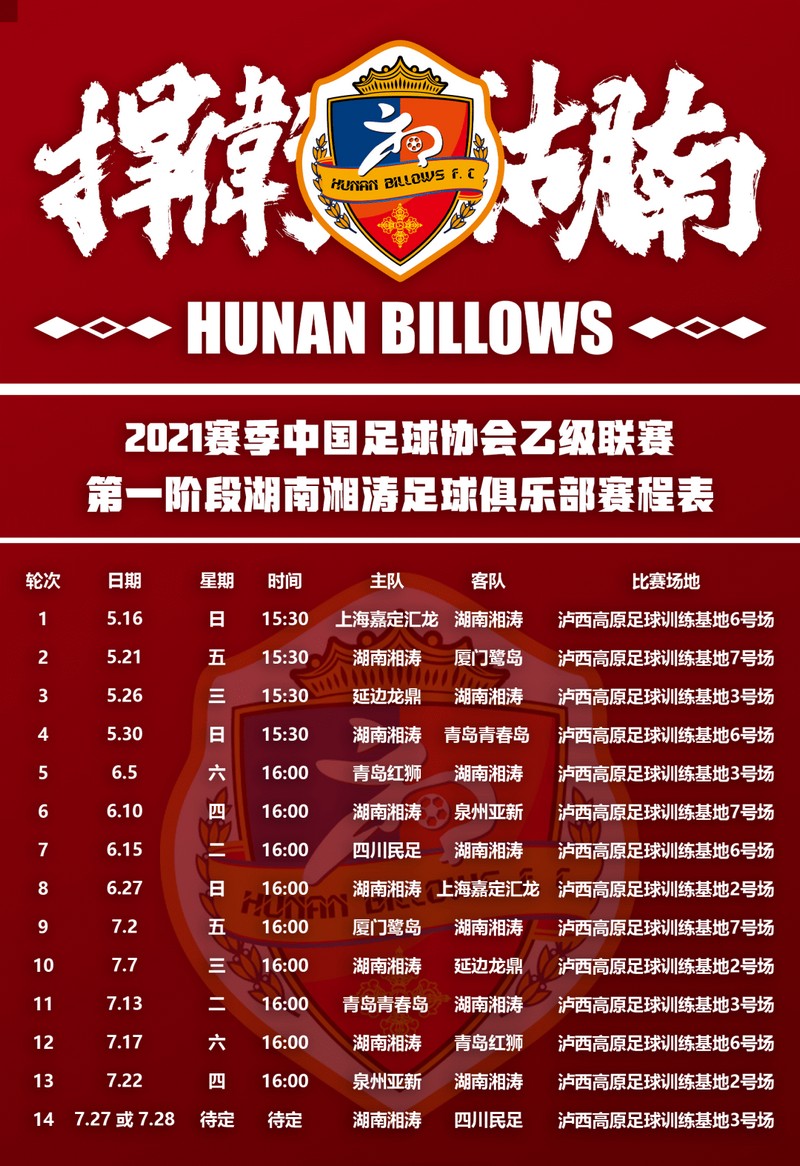 红网时刻新闻5月8日讯(记者周雨墨)5月6日,湖南湘涛足球俱乐部官方公众号公布了2021赛季球队大名单,标题是“为湖南而战”。5天后的5月12日,这支已没有固定基地的职业球队,即将开启自己的第十四次职业联赛征程。
