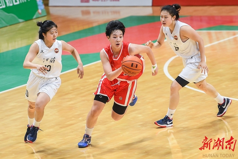 湖南队员(中)在比赛中突破。