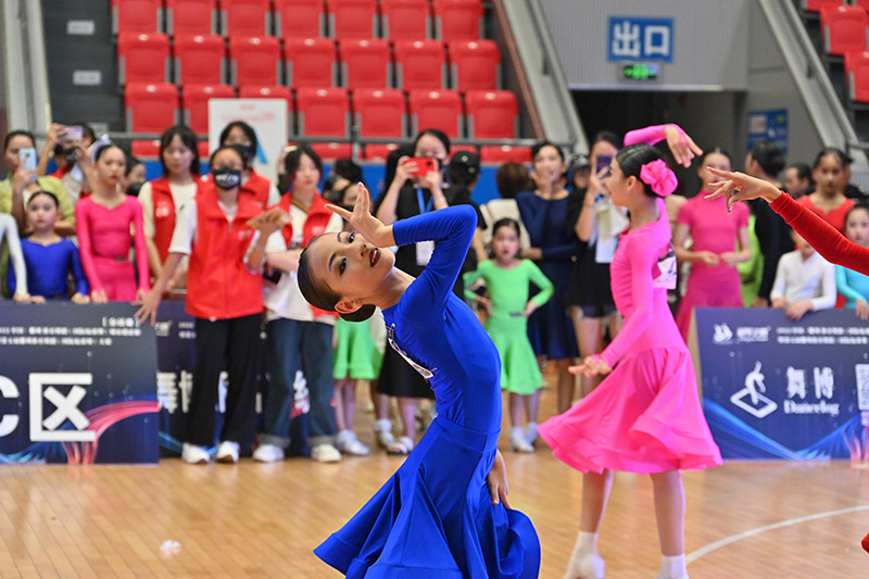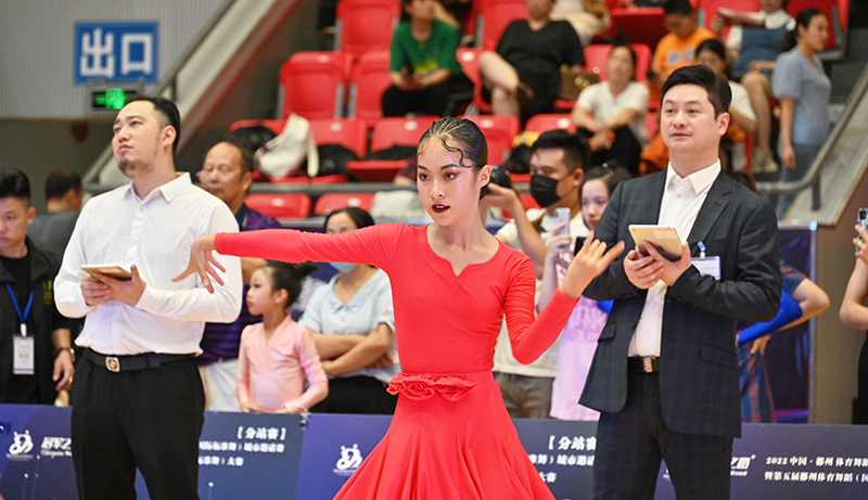 全民健身,舞动郴州。6月4日,由湖南省国标舞总会、郴州市全民健身服务中心指导,郴州市体育舞蹈运动协会主办的2022年“冠军之路”第五届郴州体育舞蹈大赛暨少儿舞蹈大赛在湖南郴州体育训练基地腾飞体育馆举行。比赛吸引来自郴州市/县(区)和省内的34支代表队、2000多人次参赛。