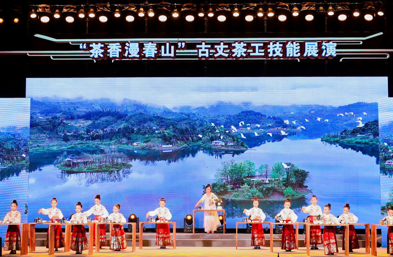 文化体验同样丰富多彩。“古丈茶工”技能展演生动呈现采茶、炒茶、茶艺等环节;同步开展的茶产品展销活动,在“古丈主播”的助力下,通过直播将古丈茶文化魅力传递给更多人。现场的“古丈特色美食集市”“特色农产品展示区”更是邀游客开启一场味蕾的湘西探秘之旅。