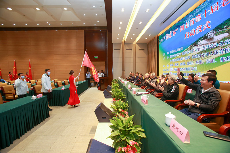 为贯彻落实《老年人权益保障法》和《湖南省全民健身条例》,推动我省老年人体育事业蓬勃发展,10月29日上午,“湘窖杯”湖南省第十届老年人运动会(以下简称“老运会”)在长沙市蓉园宾馆正式启动。会议由湖南省体育局副局长、本次运动会组委会执行常务副主任苏健全主持,湖南省人大常委会原副主任、本次运动会顾问沈瑞庭宣布开幕。