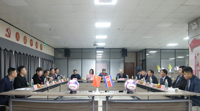 2024年1月24-25日,朝鲜民主主义人民共和国足球协会(以下简称“朝鲜足协”)来湘就商务合作和足球发展事宜进行洽谈,并与茵浪体育进行战略合作签约。签约仪式于24日下午在娄底市文旅广体局会议室举行,湖南省体育局党组成员、副局长张连标,娄底市人民政府副市长杨维,娄底市委副秘书长、外事办主任邓伟,娄底市文旅广体局党组书记、局长彭一伶等领导出席。