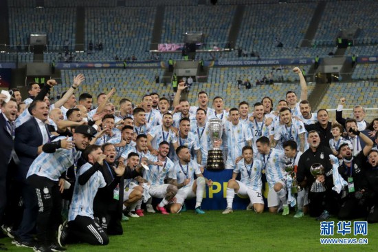 2021美洲杯足球赛决赛10日晚在里约热内卢马拉卡纳大球场举行,阿根廷队凭借上半场迪玛利亚的进球1:0战胜东道主巴西队,获得冠军。这是阿根廷球星梅西代表国家队捧起的首个成年国际大赛冠军。