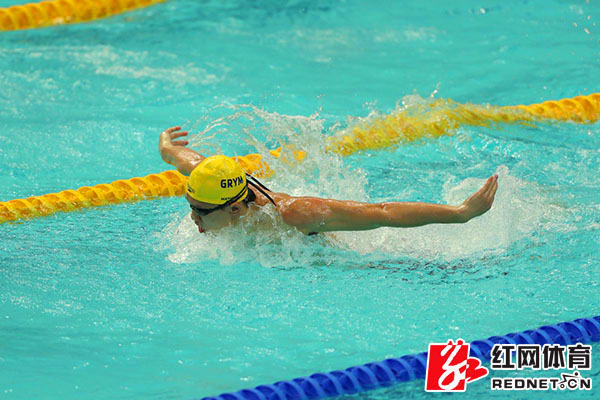 (资料图:天津全运会男子400米个人混合泳,湖南伢子黄朝升获得铜牌。摄影/陈放)