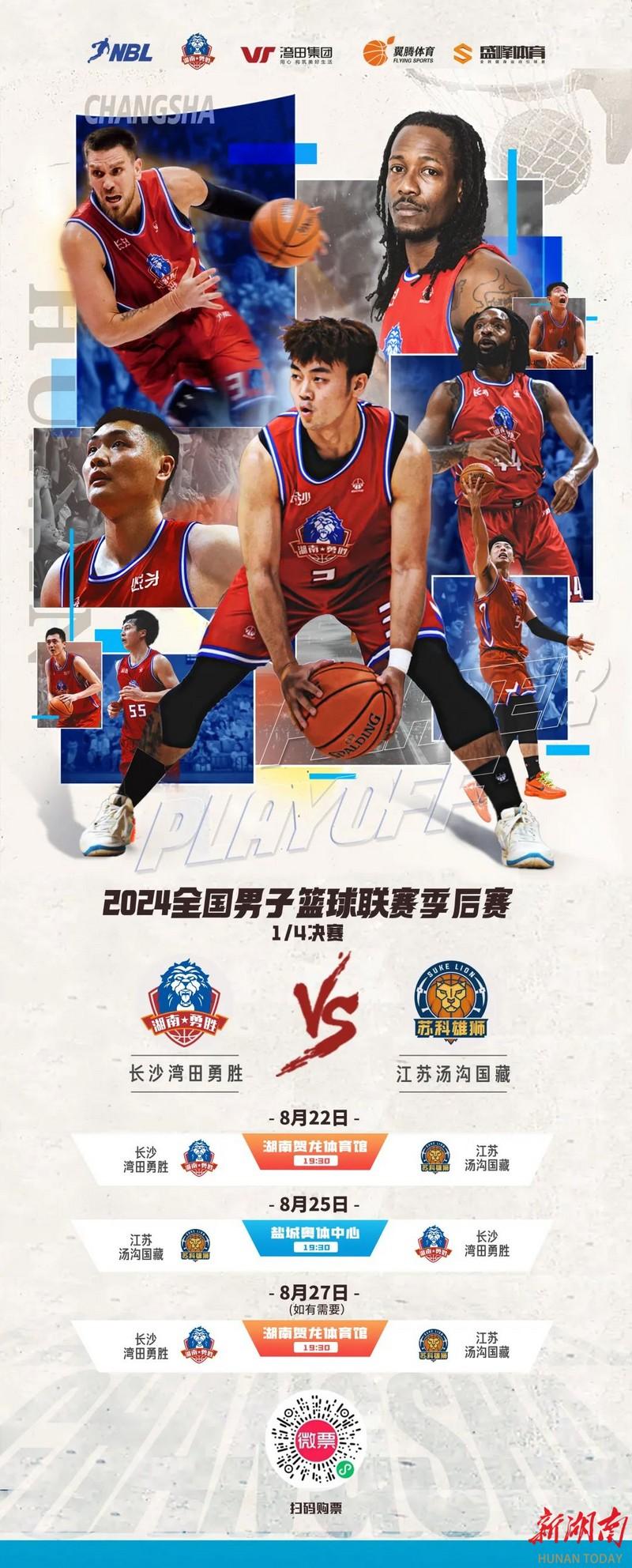 8月22日,2024赛季NBL(全国男子篮球联赛)季后赛一触即发。当晚,长沙湾田勇胜将在主场湖南贺龙体育馆迎来第一场对决——迎战江苏汤沟国藏。