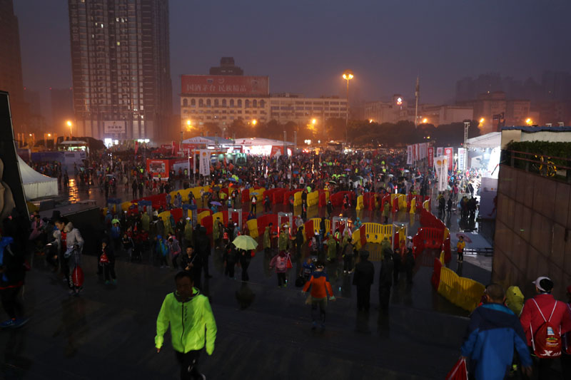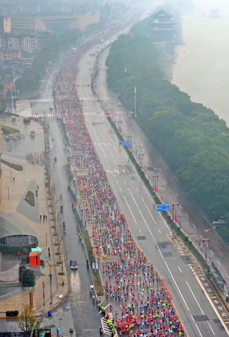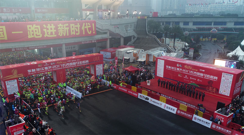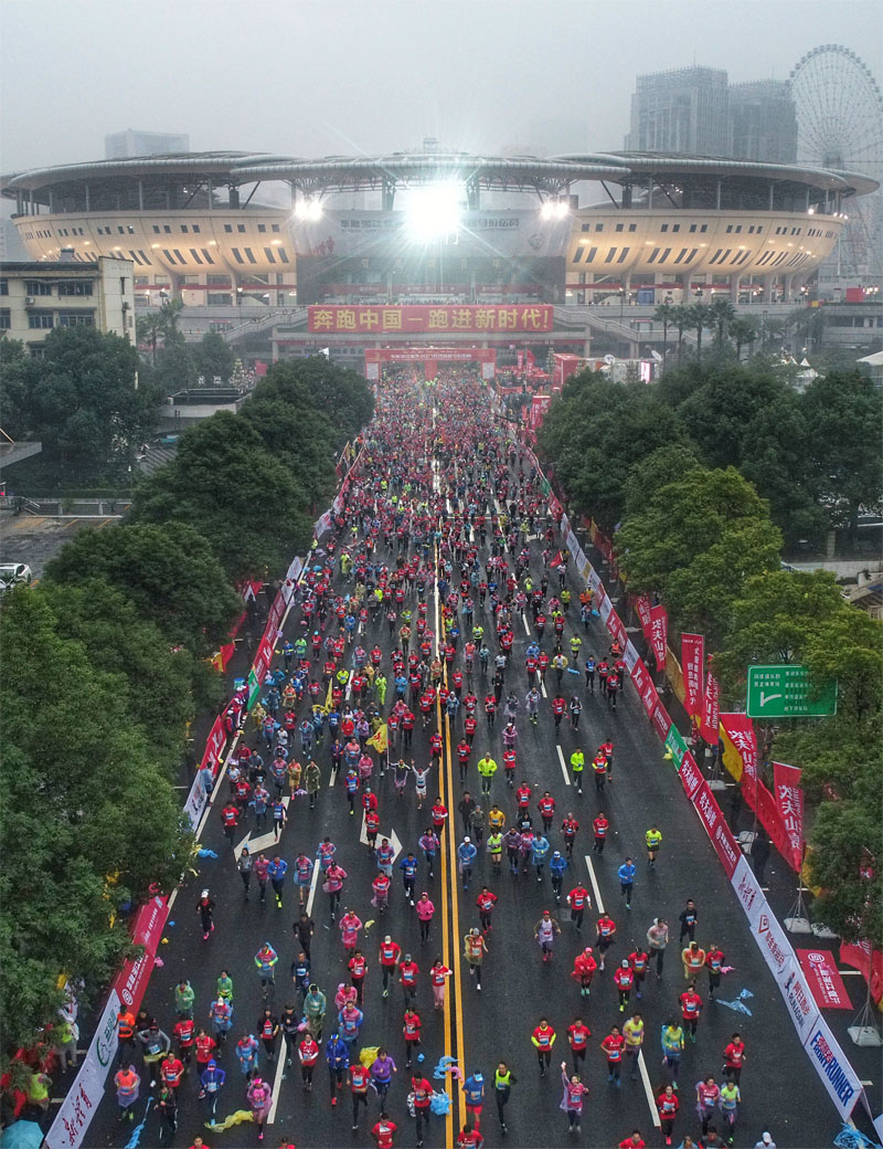 (图为参赛选手从起点贺龙体育中心出发。 长马组委会供图)