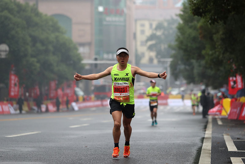 (图为中国选手李鹏第一个冲向全马终点。 长马组委会供图)
