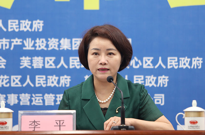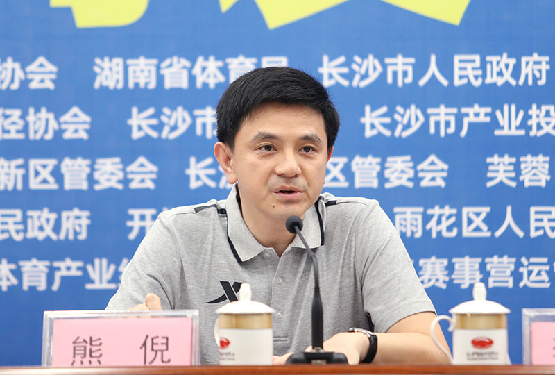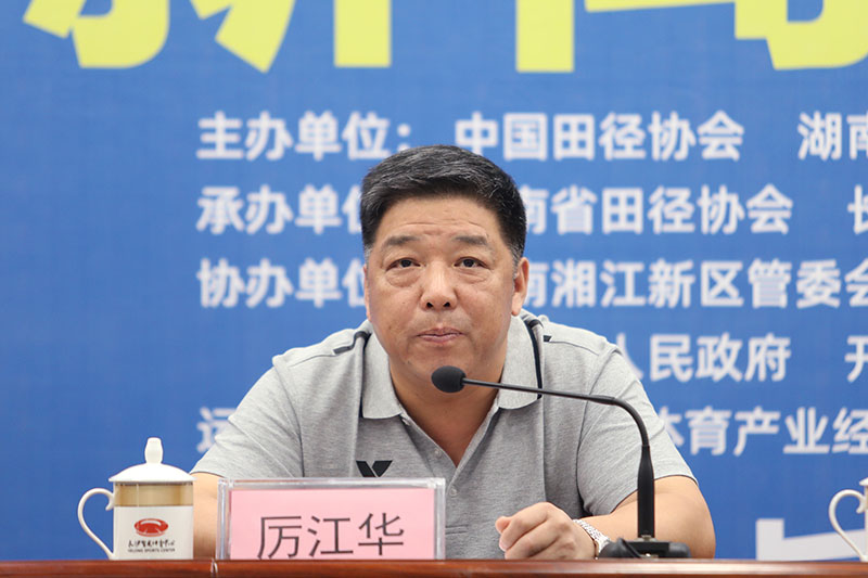 (图为长沙市人民政府副秘书长厉江华在会上发布赛事新闻。)