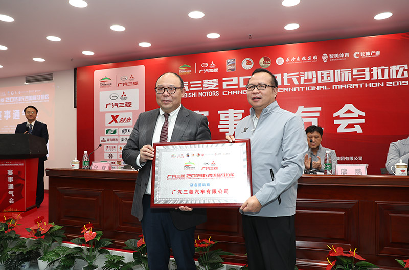 开启新征程,跑进新时代。10月15日,广汽三菱2019长沙国际马拉松赛前通气会在贺龙体育中心召开。长沙市体育局副局长覃事平、长沙市产投集团党委委员、副总经理廖鹏、智美体育集团高级副总裁宋鸿飞、广汽三菱汽车有限公司副总经理向毅及赞助商代表、省市区级媒体、跑团代表等参加了本次赛事通气会。