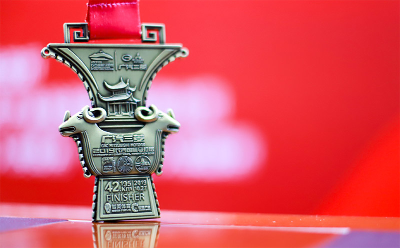 2019长沙国际马拉松完赛奖牌设置独具长沙特色,组委会充分征求跑友意见,由跑友票选,最终在三款设计稿中脱颖而出。奖牌以长沙宁乡出土的文物四羊方尊为设计来源,奖牌设计充分体现出这片土地的历史及文化积淀,奖牌正面的造型以“臻于极致的青铜典范”之称的四羊方尊整体造型为主,背面加之爱晚亭的造型,体现出历史与现代的相互交融,奖牌的设计与长沙历史文化名城的气质相符,体现出了浓厚的地方特色。2019长沙国际马拉松的奖牌将是跑者完赛后最好的礼物。