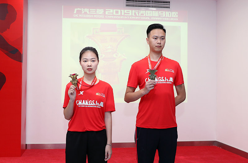 新闻通气会上还公布了赛事奖牌及参赛服装,2019长沙国际马拉松还特别推出了特步长马别注款和青岛啤酒长马定制罐。