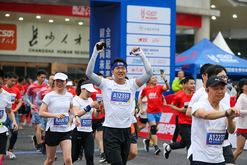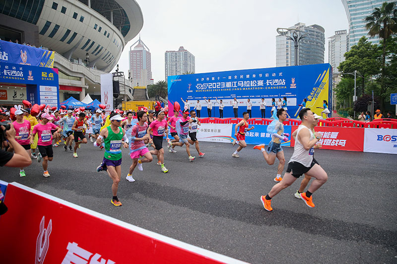 4月22日上午7时30,长沙市第十一届全民健身节启动式暨战马2023湘江马拉松赛·长沙站鸣枪开跑。5000余名跑者从贺龙体育中心南广场出发,奔跑在一江两岸,感受山水洲城的独特魅力。