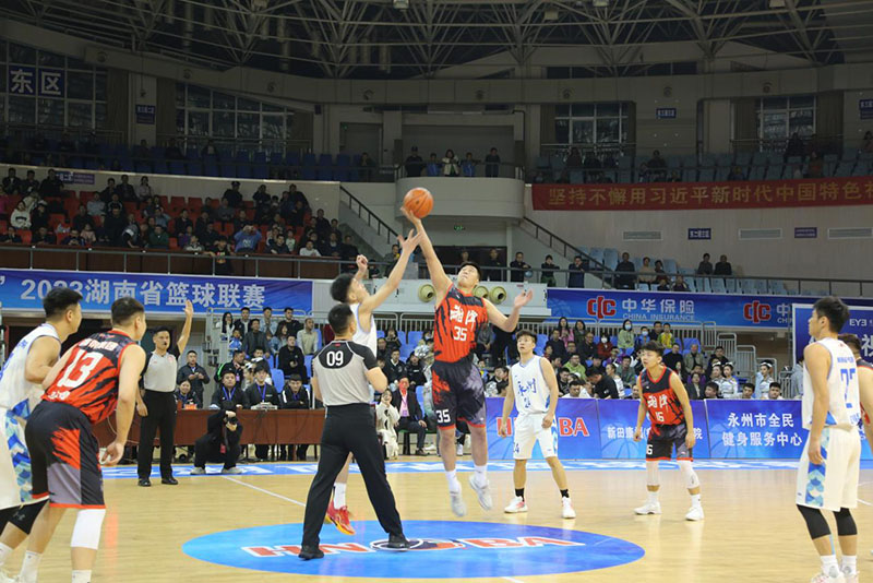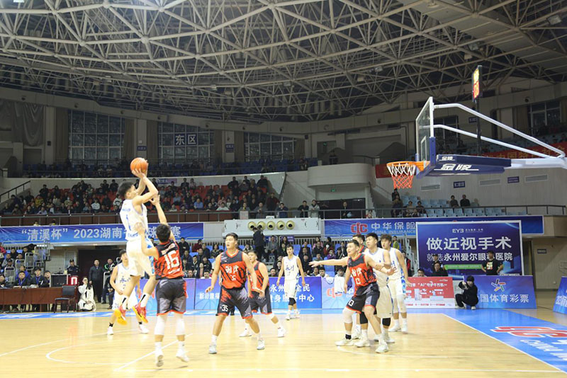 11月21日晚,“清溪杯”2023年湖南省篮球联赛(永州站)在永州市体育馆举行。