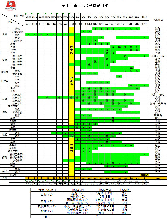 第十二届全国运动会竞赛总日程安排