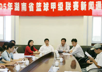 由湖南省篮球协会主办,常德市篮排球协会承办的2005年湖南省首届篮球甲级联赛新闻通气会,9月28日下午在湖南省体育局召开。湖南省篮球协会常务副主席李鸿贵发布了新闻。
