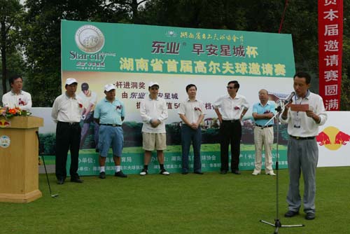 在喜迎中秋国庆之际,由湖南省体育局主办,湖南省高尔夫球协会和东业地产(长沙)有限公司承办的“东业·早安星城”杯湖南省首届高尔夫球邀请赛,2007年9月23日在风景如画的长沙龙湖高尔夫俱乐部隆重举行。