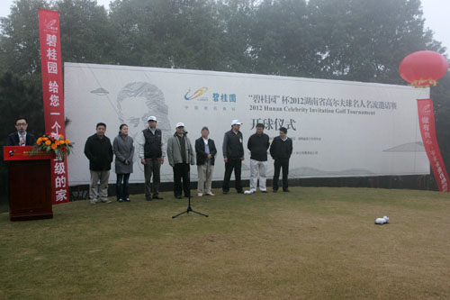 “碧桂园”杯2012湖南省高尔夫球名人名流邀请赛,3月19日在长沙青竹湖国际高尔夫球俱乐部举行。老同志杨正午,罗桂求等出席开球仪式。省高尔夫球协会主席、省体育局局长李舜在开球仪式上讲话,本次比赛冠名商、碧桂园集团总裁及执行董事莫斌致辞。仪式上,罗桂求、李舜、莫斌共同为大赛开球。