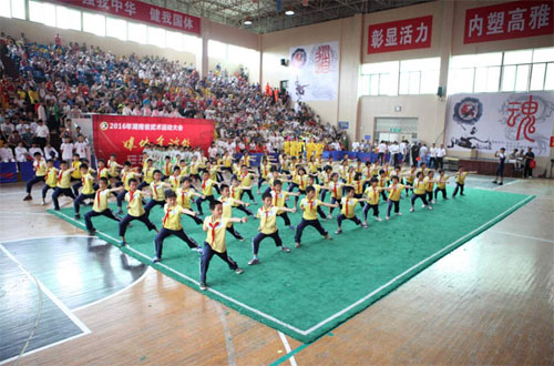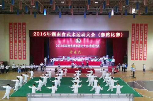 6月25日至26日,湖南省武术运动大会套路比赛在郴州永兴县第一中学隆重举行。来自全省各武术协会、武术门派、武术馆校、大专院校、中小学校等58支代表队1000多名武术爱好者汇聚一堂,以武会友,切磋技艺。