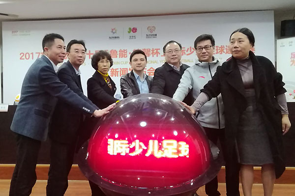 最后,所有与会领导及嘉宾共同开启水晶球,宣布2017东升竞体第十届“鲁能·德馨杯”国际少儿足球邀请赛正式启动。