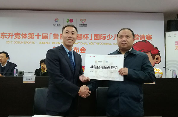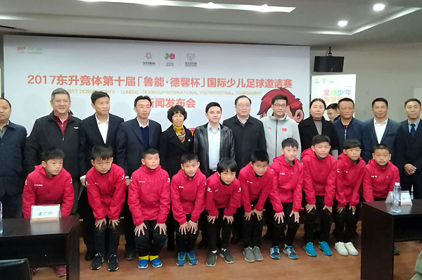 2017年东升竞体第十届“鲁能·德馨杯”国际少儿足球邀请赛(以下简称东升竞体德馨杯)将于2017年4月28日拉开大幕。4月10日上午,组委会在长沙市雨花区德馨园小学举行新闻发布会。湖南省体育局副局长熊倪、长沙市体育局党委书记江哲明、长沙市教育局副局长缪雅琴、湖南省足协秘书长安忠等领导和嘉宾参加了发布会。
