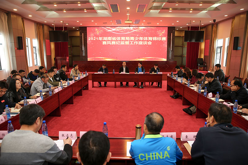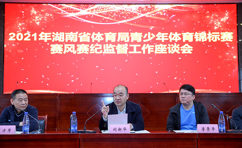 为深入贯彻落实省体育局全面从严治党工作会议精神,进一步规范和加强青少年体育锦标赛赛风赛纪监督工作,4月19日上午,湖南省体育局召开青少年体育锦标赛赛风赛纪监督工作座谈会。党组成员、驻局纪检监察组组长刘新华,驻局纪检监察组副组长李景平,青少年体育处处长肖方军,机关党委常务副书记孙丰海,各项目运动管理中心主任、分管竞赛工作副主任、纪检委员,青少年体育处全体人员参加了会议。