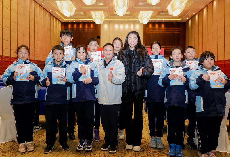 奥运冠军龙清泉、田卿,作为项目形象大使,在仪式开始前,两位奥运冠军还与来自长沙市雨花区桂花树小学的10名小篮球运动员进行了互动,并赠送有他们亲笔签名的《体育的力量》一书。 (稿源:湖南日报·新湖南客户端12月23日讯 记者蔡矜宜 图:活动主办方)