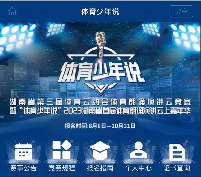 为弘扬中华体育精神,传播中华体育好声音,挖掘中华体育文化,由国家体育总局群体司、中华全国体育总会群体部、湖南省体育局主办,湖南师范大学新闻与传播学院指导的2023年全民健身线上运动会湖南省第三届体育云动会体育朗诵演讲云竞赛暨“体育少年说”2023湖南省首届体育朗诵演讲云上嘉年华活动正火热进行。