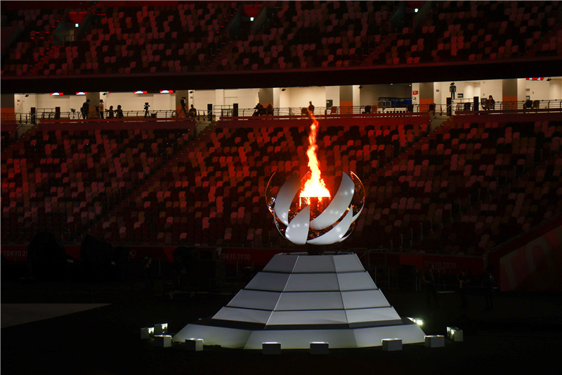奥运圣火缓缓熄灭,圣火台缓缓闭拢,还原成一个球形。在现场运动员和工作人员的欢呼声中,人们向东京奥运会说再见。(转自8月9日《中国体育报》01版)
