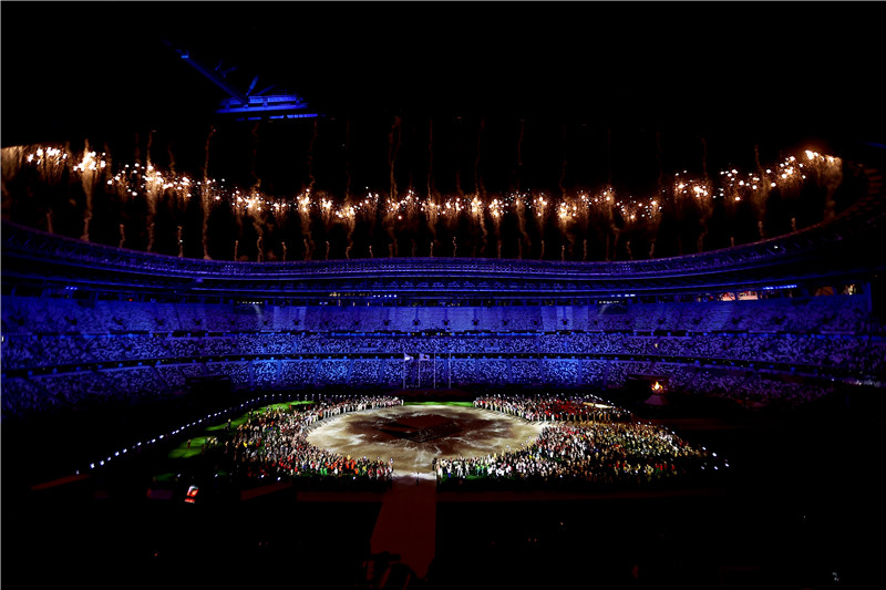 在一个多小时的运动员入场和闭幕式表演后,本届奥运会举行最后的颁奖仪式。女子马拉松和男子马拉松获奖运动员享受了在闭幕式上领取奖牌的荣耀。