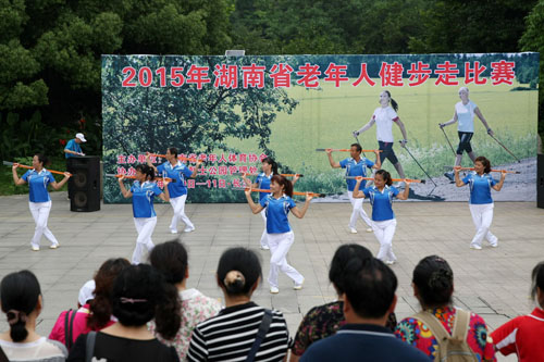 为全面落实《湖南省全民健身条例》,积极健康应对人口老龄化,推动我省老年健步走运动的推广和普及,由湖南省老年人体育协会主办的2015年湖南省老年人健步走比赛,于6月9日-11日在长沙举行。共有来自长沙、岳阳、娄底、邵阳、郴州等地市的6支代表队近80名中老年健身爱好者参加了比赛。