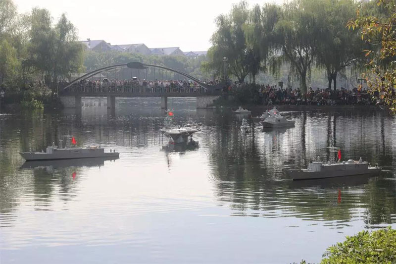 开幕式后,全体人员到滨湖公园观看国家航海模型队精彩的表演。