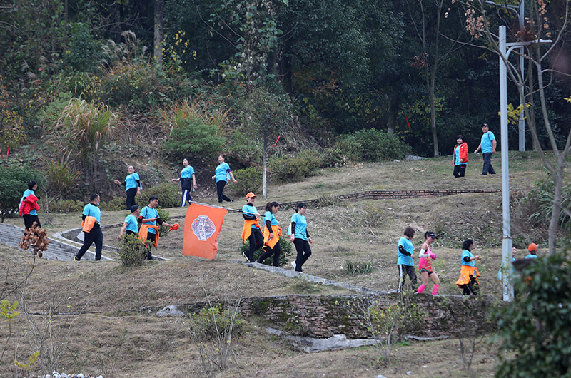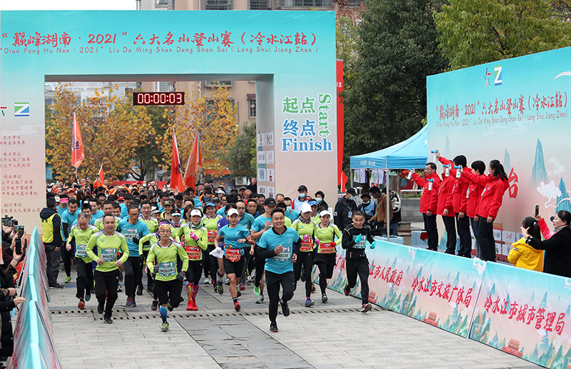 选手们沿着铺着红砖的甬道蜿蜓而上,跨过萌发在红砖缝隙里的小草,越过几道山脊和小径,还要挑战石阶梯、碎石小路、丛林小道等复杂的路况,然后登上青山巅,可看见延绵雄伟的雪峰山余脉,看见蜿涎东流的资江河,眺望远方,连绵不断的山脉与天相接,四周峰峦耸峙,沟谷回环,气势壮观。他们用自己的脚步踏入了冷水江的山山水水中,用运动与热情褪散了冬季的严寒,用速度与激情展示着奔跑的活力,强健有力的步伐和不言放弃的精神构成了一道亮丽的风景线。