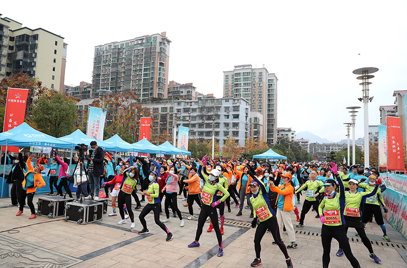 上午八点半,全体参赛选手在专业健身教练指导下进行跑前热身运动,拉伸韧带、活动关节,让跑步肌肉群迅速进入最佳状态。赛前活力健身操后,跑者们就已按捺不住热血沸腾的心,他们以热情、饱满的状态等待着鸣枪开跑。