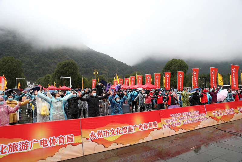 1月7日,“大美永州”大穿越活动(宁远站)在有“德孝之源,福地九嶷”美誉的永州市宁远县举办,共有800余名徒步选手共聚九嶷山舜帝陵,用脚步丈量大美永州,享受亲近自然的徒步体验之旅。