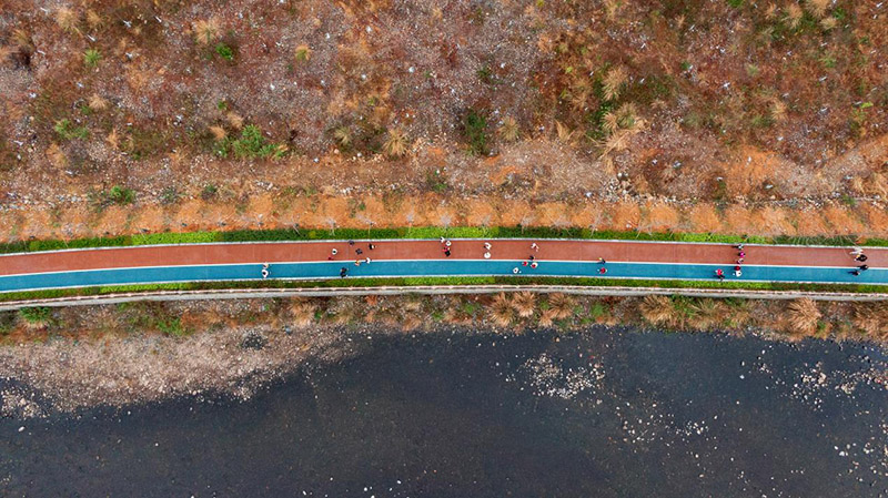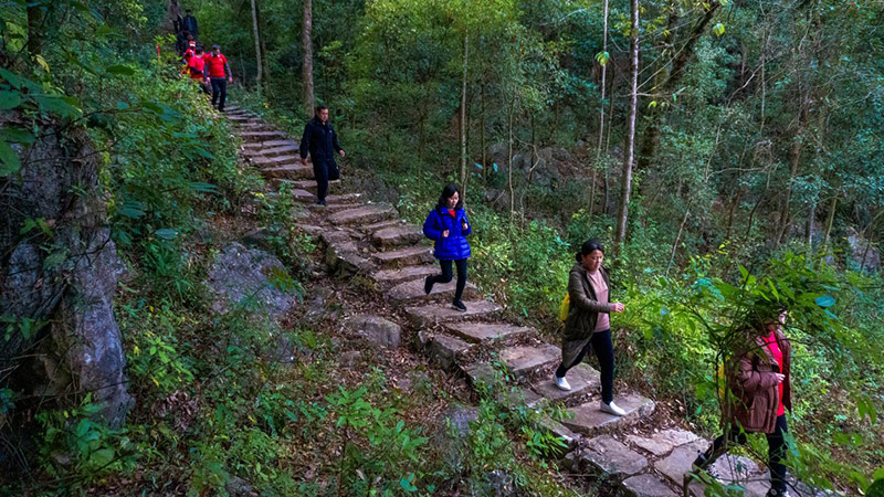 上午9点,选手从舜帝陵广场出发,沿乡间小路和石板台阶攀登向前,途经茶马古道、鲁观村、九疑河湿地公园、九疑山民族园村、舜帝陵古遗址、永福寺、紫霞岩等地,漫步在全长2600米的健身步道上,尽赏山水辉映的九嶷河风光,感受家乡的变化,厚植家乡情杯。