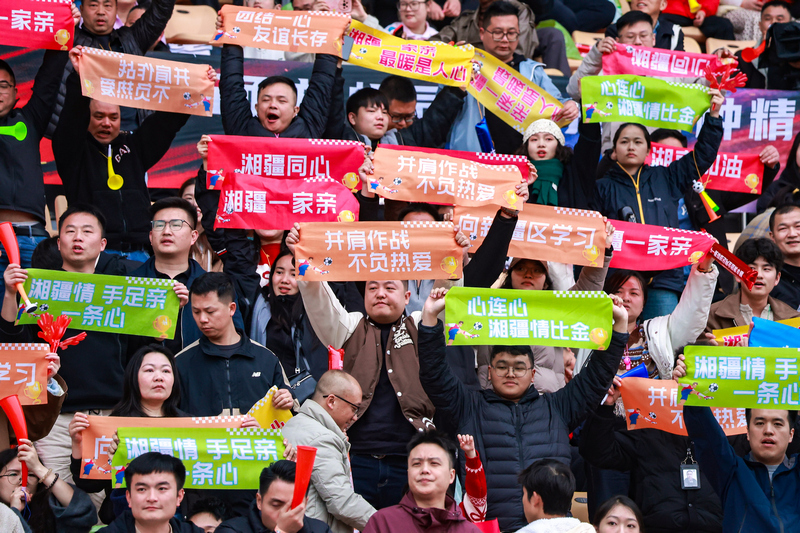 决赛日的湖南省体育场人声鼎沸,专程从外省赶来的亲友团、带着孩子见证荣耀的快递小哥家属、被赛事热度吸引的长沙市民齐聚看台,共同期待这场巅峰对决。赛场之上,除了剑拔弩张的竞技氛围,更有一份跨越地域的温情,从比赛开始前便悄然流淌。