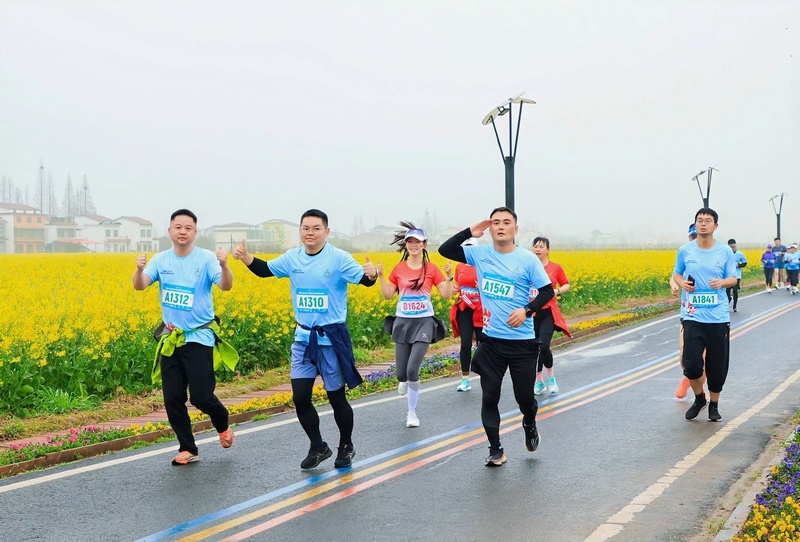 赛道蜿蜒穿行于罗文村万亩油菜花海中,金黄的花浪与奔跑的身影交相辉映,构成了一幅动人的春日画卷。参赛选手沿途欣赏着“全国乡村旅游重点村”和“国际涂鸦艺术村”的独特魅力,感受步移景异的生态美景。“太美了!感觉不是在跑步,而是在画里穿梭。”长沙跑友李先生兴奋地表示。