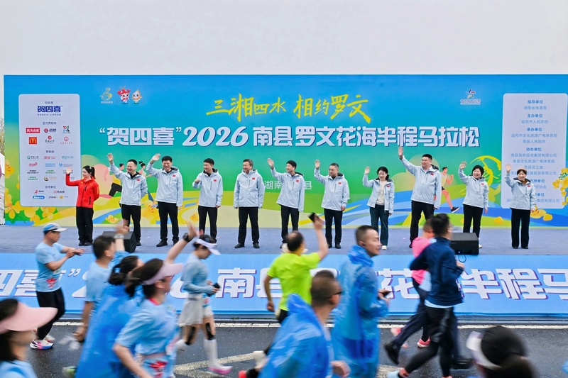 3月23日,“贺四喜”2026南县罗文花海半程马拉松在益阳市南县洞庭之心广场鸣枪起跑。来自全国各地的2000名选手迎香奔跑,共赴一场春日油菜花海的“金色之约”。