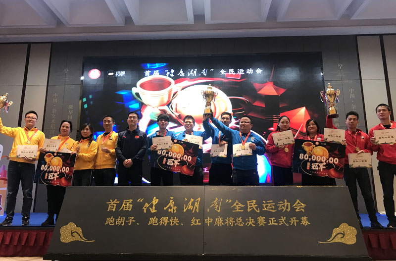 11月10日,首届“健康湖南”全民运动会智力运动项目总决赛在长沙圆满举行。经过一天的激烈角逐,最终,常德战队荣获扑克(跑得快)、纸牌(跑胡子)玩法的冠军,全国战队荣获竞技麻将(红中麻将)的冠军。