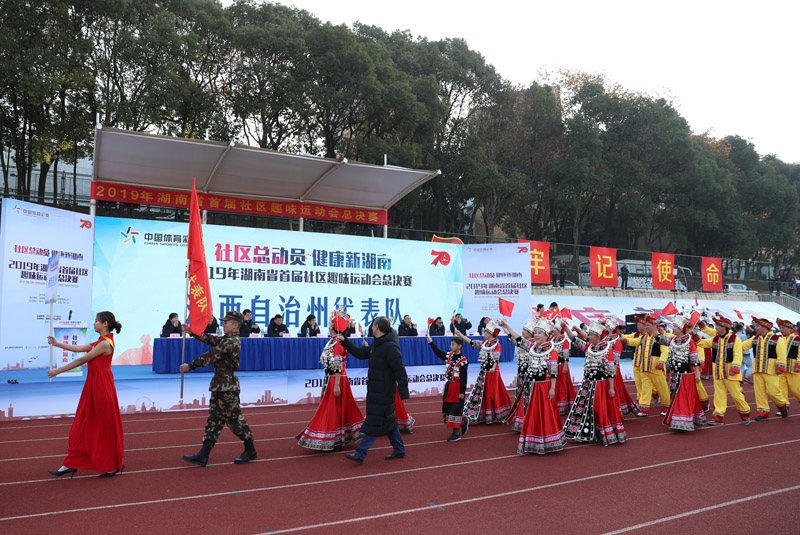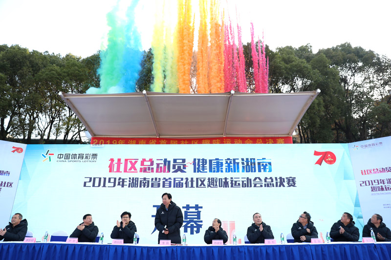 12月8日上午,由湖南省体育局主办,各市、州体育(教体、文体)局协办的2019湖南省首届社区趣味运动会总决赛在湖南省体育运动学校田径场举行。湖南省体育局党组书记、局长李舜宣布活动正式开幕,湖南省体育局副局长苏健全致开幕辞,湖南体育职业学院院长谭焱良,湖南体育产业集团有限公司党委副书记、总经理陈彬,湖南省财政厅文化处处长尹华等领导出席。来自全省14个市州的500余名选手进行了激烈的角逐,丰富多彩的趣味群众体育活动相继展开。