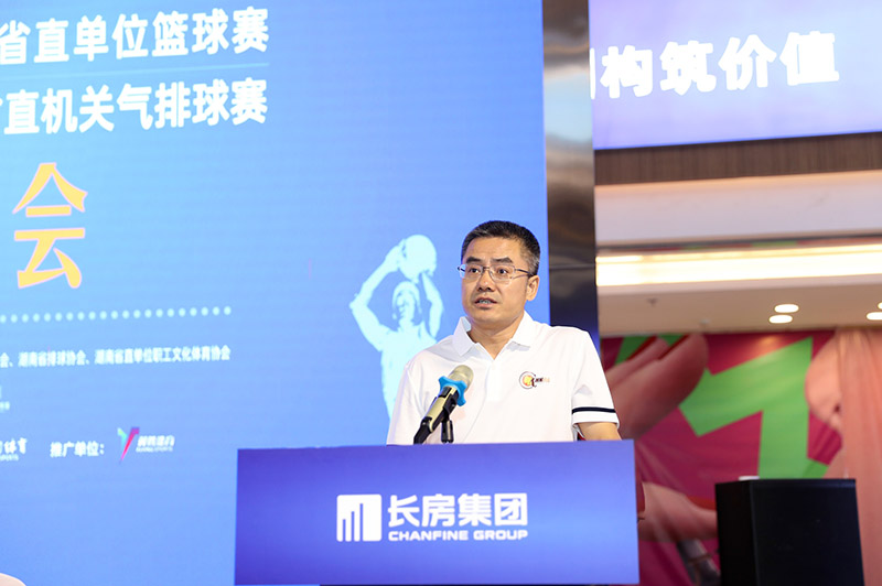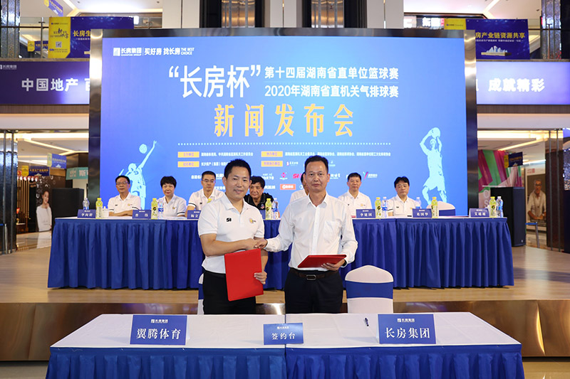 新闻发布会上,长房集团与湖南翼腾体育文化发展有限公司还进行了签约仪式,长房集团联合冠名了第十四届湖南省直单位篮球赛、2020年湖南省直机关气排球赛。