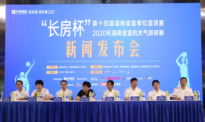 9月5日,第十四届湖南省直单位篮球赛、2020年湖南省直机关气排球赛新闻发布会在长房集团营销设计展示中心举行,这也是省直单位篮球赛和气排球赛首次共同举办新闻发布会。省政协原副主席、省篮球协会名誉主席刘晓,省体育局一级巡视员、省篮球协会主席杨再辉,省直工委委员、省直工会主席杨立勇,长房集团党委书记、董事长李建国,省排球协会主席曾伟,省水利水电勘测研究设计院党委书记、省篮协名誉副主席葛国华,湖南翼腾体育文化发展有限公司董事长李向群等领导出席了此次发布会。