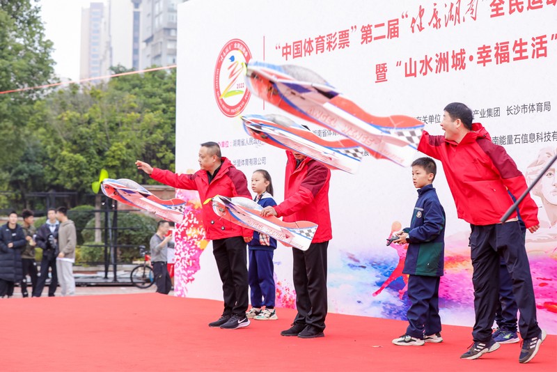 总决赛开幕式现场,湖南省体育局群众体育处处长罗立新在致辞中表示,省体育局坚持贯彻落实党的二十大的指示精神,以健康行动为抓手,本次赛事就是检阅疫情防控常态化下我省全民健身的开展情况,助力体育强省,健康湖南的建设。随后,出席领导上台共同启动省内青少年们自制航空航天模型飞机,宣布活动开幕。