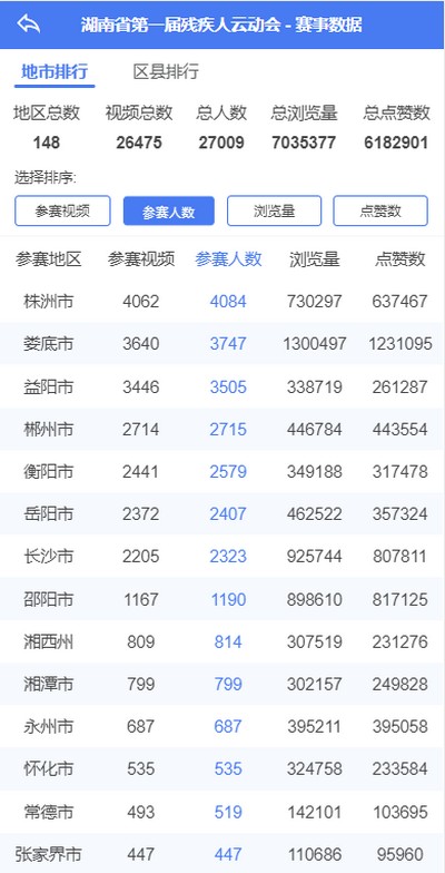 据悉,“长沙银行杯”湖南省第一届残疾人云动会各大项目参赛的数据整理已经完成,专家评审工作近日全面启动,各大项目的成绩将根据评审工作的进度在赛事主平台和新湖南残联频道分阶段公示。