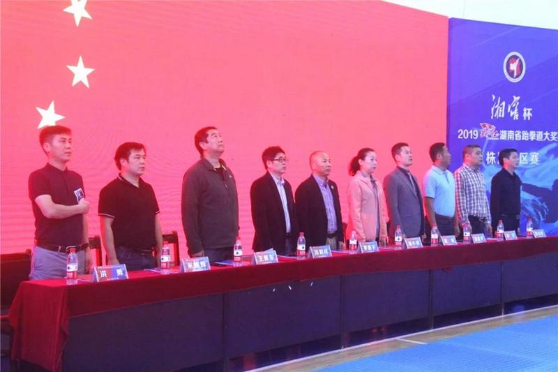 5月3日上午,湖南铁路科技职业技术学院体育馆内座无虚席,在现场观众和网络视频直播平台前不计其数的观众瞩目下,“湘窖杯”2019年战湘江湖南省跆拳道大奖赛株洲分区赛隆重开幕。中国跆拳道协会执委、湖南省跆拳道运动协会主席罗器宇,株洲市文化旅游广电体育局局长杨小幼,湖南省跆拳道运动协会副主席冯利祥,湖南工业大学体育学院党委书记王恩东,湖南省跆拳道运动协会副主席兼本次大赛裁判长黄晓,株洲市总工会常务副主席邵建平,株洲市体育总会秘书长阎军,湖南铁路科技职业技术学院体育部部长彭宗平,湖南工业大学体育学院社体系主任、湖南跆拳道运动协会副主席米雄辉,湖南省跆拳道运动协会副主席兼株洲推广管理委员会会长洪勇等领导和嘉宾出席了开幕式。